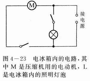 图4-23是一个简化了的电冰箱的电路图.学习了串联和并联电路的知识,你能看懂这个电路图吗?电路图中的灯泡L与电动机M是串联的还是并联的?